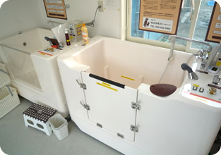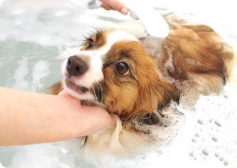 「わんだふるスパ」名古屋西区のセルフ式マイクロバブルバス(ペット・犬のお風呂)。小型犬から超大型犬まで入れる広々浴槽。トリミング、ペットシッター、ペット用品専用コインランドリー。