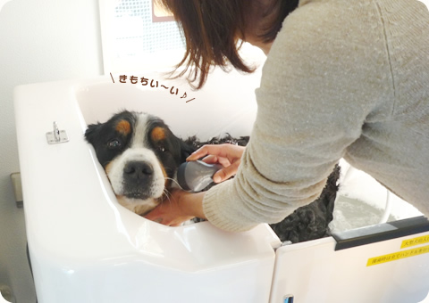 マイクロバブルバスは微細気泡と水流でワンちゃんをやさしく洗います。